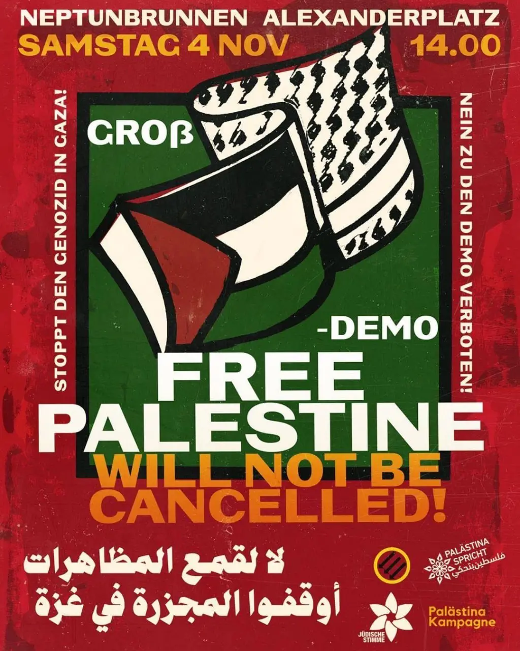 Berlin: Großdemo – Free Plaestine will not be cancelled: Stoppt den Genozid in Gaza! Nein zu den Demo-Verboten!