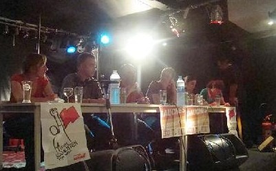 Weil auch Anja Deschoemacker, die die Liste in diesem Wahlbezirk anführt, dabei war, nahmen auch viele EinwohnerInnen des Bezirks von Saint-Gilles an der Gründungsversammlung teil. Die Organisationen, die Teil dieser Initiative sind hat in ihren eigenen Unterstützerkreisen gut mobilisiert. Das Treffen zeichnete sich auch dadurch aus, dass Charlotte Balavoine, Kandidatin der „Front de Gauche“ bei den jüngsten Wahlen in Frnakreich, und Panayota Maniou vom griechischen Linksbündnis „Syriza“ teilnahmen.