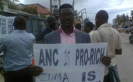 Vor dem südafrikanischen Generalkonsulat sprach Dagga Tolar, Sprecher des DSM, im Namen der Protestierenden und verlas den Protestbrief, der über den Konsul an Präsident Jacob Zuma weitergeleitet werden soll (vgl. unten). Im Auftrag des Generalkonsulats nahm Mr. Lindak Pule, Erster Sekretär der Abteilung für allgemeine Dienste, ein Protestschreiben entgegen.