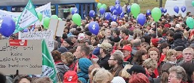 Der Druck war groß, der aus den sächsischen Schulen kam, die Beteiligung an den Streikmaßnahmen der Gewerkschaft GEW infolge dessen überwältigend. Bereits im September nahmen 18.000 LehrerInnen an einem eintägigen Warnstreik teil und zogen vor den sächsischen Landtag. Im November beteiligten sich an drei Streiktagen neuerlich 20.000 KollegInnen am landesweiten Ausstand.