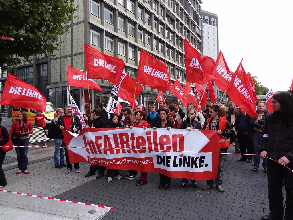 Eine Woche nach den Demonstrationen am bundesweiten UmFAIRteilen-Protesttag, an denen sich in 40 Städten insgesamt 40.000 Menschen beteiligten (und DIE LINKE überall gut sichtbar war), titelte die Zeitung Klar von der LINKEN-Bundestagsfraktion in ihrer Ausgabe Nr. 27 am 9. Oktober: Die Lösung der Krise heißt: Umverteilen. Darin steht: Während die Reichen immer reicher werden, explodieren die Staatsschulden, sinken Löhne und Renten. Es ist höchste Zeit für einen Kurswechsel: UmFAIRteilen Reichtum besteuern! lautet das Gebot der Stunde.