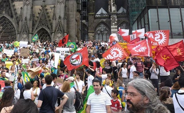 Obwohl die Organisatoren von der Alevitischen Gemeinde Deutschland eine Demonstration durch die Kölner Innenstadt wegen Fehlplanungen der Route leider abgesagt hatten, zogen um die tausend TeilnehmerInnen spontan durch das Stadtzentrum. Am Kölner Hauptbahnhof, wo gleichzeitig eine Solidaritätsaktion von brasilianischen Gruppen mit den dortigen Protesten stattfand, gab es dann eine kurze gemeinsame Aktion: „Überall ist Taksim, überall ist São Paulo, überall ist Widerstand!“