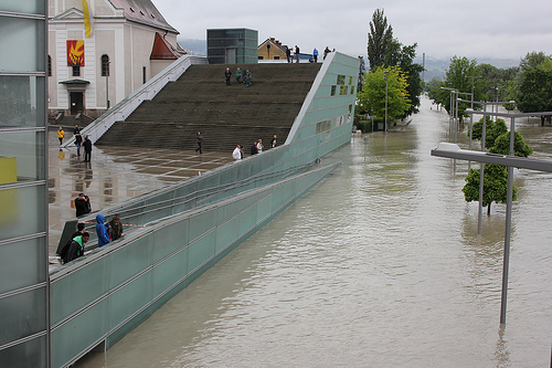 Mal wieder: Es gibt eine Hochwasserkatastrophe. Der Verkehr liegt lahm, Ortschaften werden überflutet, Menschen verlieren ihre Häuser, Autos, manche sogar das Leben. PolitikerInnen eilen Medienwirksam mit Gummistiefeln an den Ort der Katastrophe und fischen nach Stimmen. Über die Ursachen und wirkliche Hilfe wird kaum gesprochen. Denn wenn die Kameras weg sind bleiben die Opfer mit der zerstörten Infrastruktur und Versicherungen, die „leider“ nur einen Teil des Schadens (wenn überhaupt) abdecken können zurück. 2013 wiederholen sich so eindrucksvoll die Ereignisse von 2002.