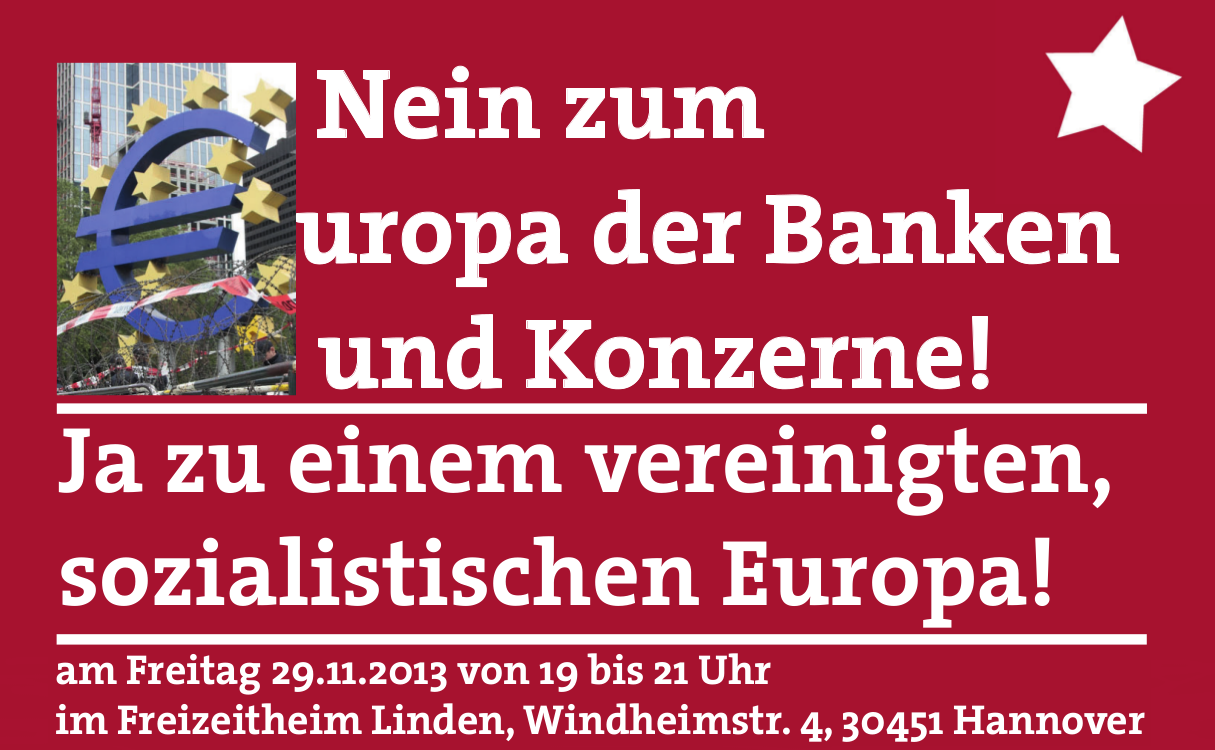 Die Herrschenden haben behauptet, die Europäische Union auf Basis der Verträge von Maastricht und Lissabon sowie die Einführung des Euro würden Frieden und Wohlstand nach Europa bringen. Das krasse Gegenteil ist der Fall. In Griechenland, Zypern, Spanien, Portugal und anderen Ländern gibt es millionenfache Armut und Erwerbslosigkeit – insbesondere in der Jugend. Wir diskutieren mit: