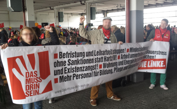 Im Rahmen des NRW-weiten SuE-Aktionstages der LINKEN hielten wir heute eine Solidaritätsrede bei der Streikversammlung am Dortmunder Hafen, in der wir die Idee vorbrachten, dass gemeinsame Demonstrationen der Streikenden aus den verschiedenen Bereichen ein eindrucksvolles Signal der gemeinsamen Stärke wären und alleine schon deshalb naheliegend seien, weil es in all diesen Kämpfen im Endeffekt um die Frage geht, ob der gesellschaftliche Reichtum für die Profite einer Minderheit oder für die Verbesserung der Lebens- und Arbeitsbedingungen der großen Mehrheit verwendet wird. Hunderte KollegInnen reagierten darauf mit lautem Applaus – vor diesem Hintergrund ist es umso trauriger, dass keine gemeinsame Aktion mit den zeitgleich in der Innenstadt demonstrierenden Streikenden des Einzelhandels zustande kam.