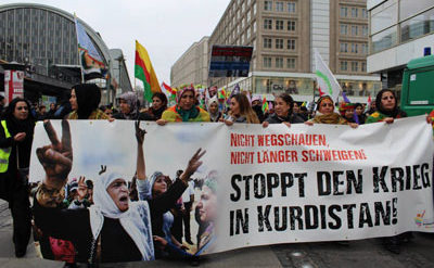 Ihr besonderer Schulterschluss mit dem türkischen Regime brüskiert Demokraten, Gewerkschaften Frauenbewegung, freie Presse, Wissenschaft und KünstlerInnen sowie insbesondere die linkspluralistische Partei HDP und die Kurdische Freiheitsbewegung, die für ihr Eintreten für Demokratie, soziale Rechte und Selbstbestimmung in der Türkei systematisch verfolgt und bedroht werden. Die Rechte von Flüchtlingen werden ordnungspolitischen Machtinteressen geopfert. Massive Bombardements, Menschenrechtsverletzungen und Massaker an der Zivilbevölkerung im Osten der Türkei durch die türkische Staatsgewalt schweigen Sie tot. Ihr Versprechen auf EU Mitgliedschaft, auf Vorzugsbehandlung und Unterstützung in Höhe von ungeheuerlichen 6 Milliarden Euro machen Sie, ihre Regierung und EU zum besonderen Komplizen des Despoten Recep Tayyip Erdogan, einem „Terrorpaten“, der eng mit den Terrorgruppen um den islamischen Staat zusammenarbeitet, einem „Kriegshasardeur“, der alle Angebote auf Friedensgespräche ablehnt, an abenteuerlichen Militäraktionen in die Nachbarländer festhält und die Genfer Friedensverhandlungen mit der Ausgrenzung der syrischen Kurden belastet.