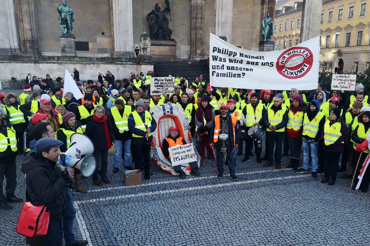 Nachdem der Absatz von Backwaren an Aldi nicht mehr gesichert werden konnte oder anders: mit den Backbetrieben eines der zahlreichen Unternehmen im Besitz von Serafin nicht mehr den gewünschten Profit und mittelfristigen Umsatz garantierte, ging es schnell ans Absägen. Die Beschäftigten bekommen lediglich 1,5 Millionen Euro für die Ausbezahlung der Dezemberlöhne und des Weihnachtsgeldes. Bei einer Demonstration der Beschäftigten, am 18. Dezember vor dem Unternehmenssitz von Serafin in München erzählte ein Kollege, der 18 Jahre im Betrieb gearbeitet hat: „Das ist keine Abfindung, sondern nach Haindl eine freiwillige Sache. Aber das ist zu wenig für uns. Das entspricht 3000 Euro brutto Gehalt. Mit was sollen wir unsere Miete bezahlen?“ Den Kolleg*innen wird lediglich ein Aktionstag der Agentur für Arbeit in Aussicht gestellt, bei dem sie über weitere berufliche Möglichkeiten und ähnliches informiert werden. Die Serafingruppe ist dadurch aus der Verantwortung.