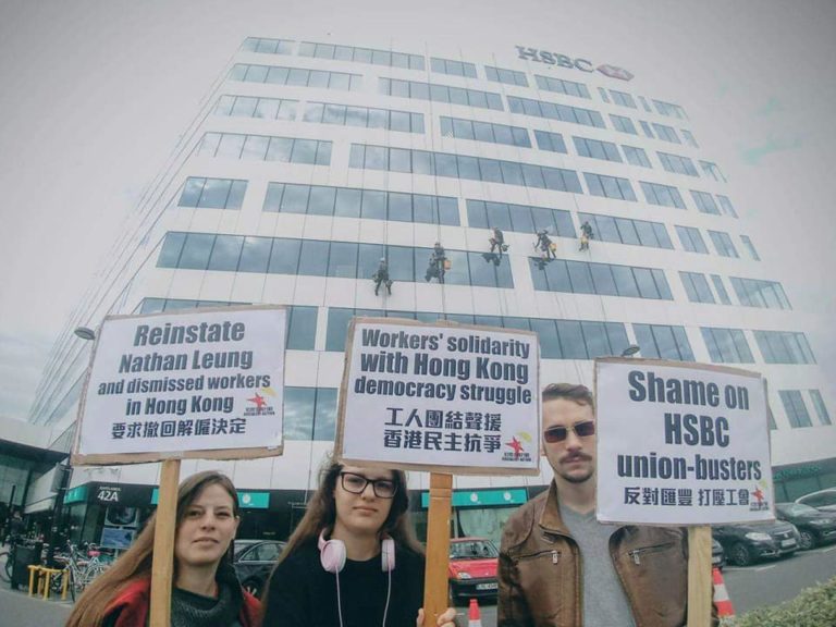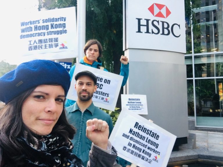 Am Mittwoch, den 2. Oktober, fanden weltweit Protestaktionen statt, um die Wiedereinsetzung von CWI-Mitglied Nathan Leung zu fordern, der vom Bankenriesen HSBC in Hongkong wegen seiner Unterstützung für die prodemokratische Bewegung und seiner Forderung an die Bankarbeiter*innen, sich in einer neuen Gewerkschaft zu organisieren, entlassen wurde. Diese Proteste veranschaulichten auch die Repressionen der Regierung von Hongkong und des chinesischen Regimes, mit denen die in Hongkong tätigen Großunternehmen zusammenarbeiten, um kämpferische Arbeiter*innen wie Nathan anzugreifen, einzuschüchtern und zu entlassen.