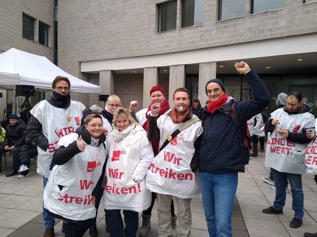 Der Lohn der meisten Kolleg*innen liegt aktuell bei nur 11,50 Euro. Eine Angleichung an den Vergabe-Mindestlohn von 12,50 Euro als erster Schritt Richtung volle Anpassung an den TVÖD wäre also eine große Verbesserung. Das ist aber nicht alles: Die Kolleg*innen wollen mehr Sicherheiten bei Arbeitsunfähigkeit und eine Arbeitszeitverkürzung von aktuell 40 bis 42 Wochenstunden auf die im TVöD üblichen 39 Stunden. Auch haben die CFM-Beschäftigten derzeit kein Weihnachts- oder Urlaubsgeld und nur 26 Tage Jahresurlaub.