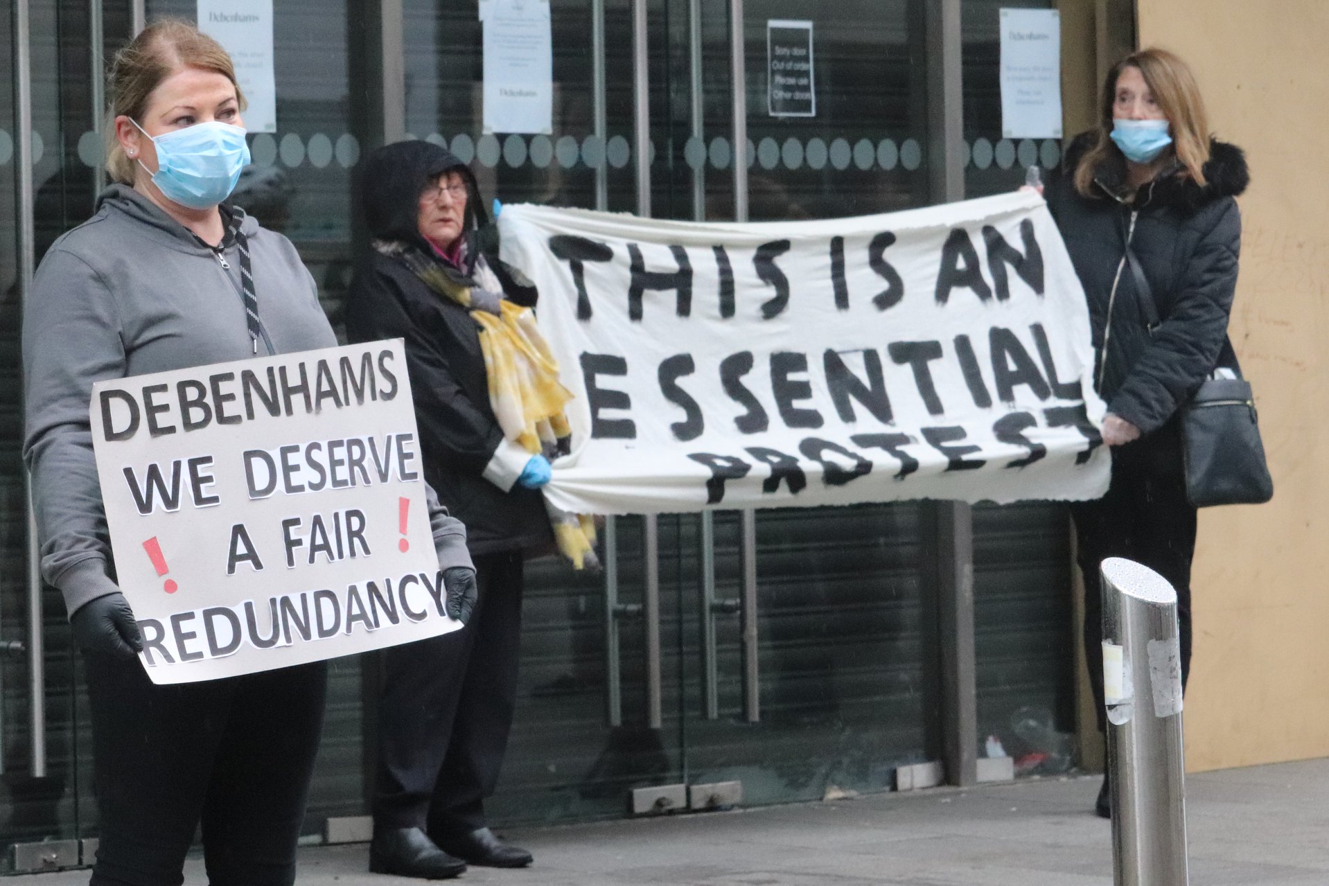 Dennoch haben am 21. April Beschäftigte vor sieben Debenhams-Filialen gegen das Vorhaben protestiert. Die Polizei hat Beschäftigten trotz Einhaltung der Abstandsgebote mit Festnahme gedroht. Der Protest sei nicht wesentlich und damit nicht legal. Mick Barry, Abgeordneter der Socialist Party Irland (Schwesterorganisation der SAV) entgegnet: „Die Debenhams-Arbeiter*innen kämpfen für ihre Lebensgrundlagen und waren im Recht, zu protestieren. Für sie und ihre Familien ist es wesentlich und nicht unwesentlich.“