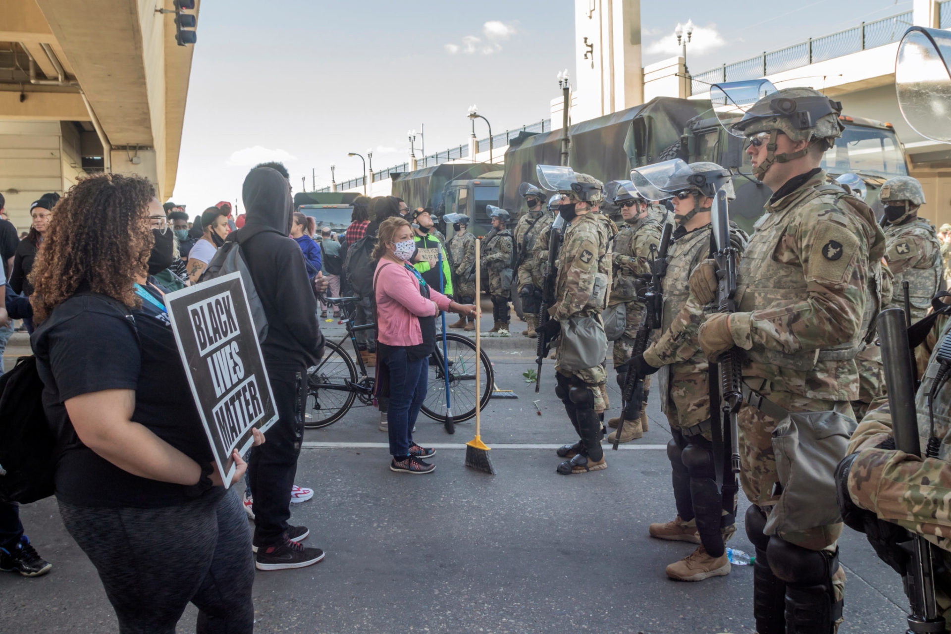 Minneapolis gleicht heute einem Polizeistaat. Die Nationalgarde besetzt wichtige Punkte der Stadt mit Panzern und automatischen Waffen, darunter Brücken und Kreuzungen, die in den letzten Tagen von Demonstrant*innen besetzt wurden.
