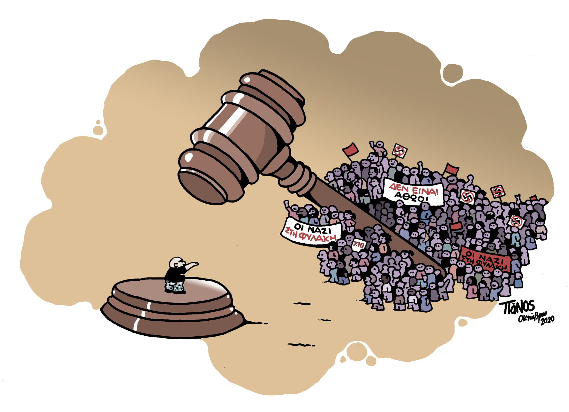 Dies ist ein historischer Tag, nicht nur wegen des Urteils gegen Chrisi Avgi, was seine Führer ins Gefängnis verwiesen hat. Sondern auch wegen der beeindruckenden Aktionen der Antifaschist*innen in Griechenland. In Athen standen mindestens 20.000 Demonstrant*innen vor dem Gerichtsgebäude, in Thessaloniki waren über 5000 und in Patras 2000 auf der Straße; weitere kleinere Aktionen kommen hinzu.
