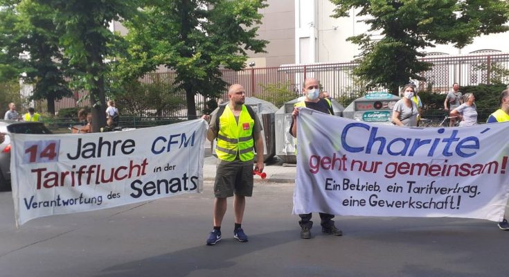 Zentrale Forderung des Kampfes der Kolleginnen und Kollegen ist, endlich die gleiche Bezahlung für gleichwertige Arbeit umzusetzen und mit ver.di einen Anwendungs-Tarifvertrag an den TVöD abzuschließen – Tarifvertrag jetzt! Es kann nicht sein, dass die große Mehrheit der CFM-Beschäftigten für gleichwertige Tätigkeiten bis zu 700 Euro weniger als die CFM-Altbeschäftigten monatlich verdienen, und das seit Gründung der CFM vor 14 Jahren.