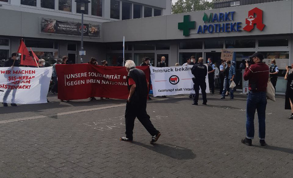 Schon bevor die AfD ihren Infostand aufbauen konnte waren 60-70 Antifaschist*innen vor Ort, die den Infostand blockierten. Auch die Bevölkerung des kleinen Ortes stand eindeutig auf der Seite der Demonstrierenden und ließ die AfD wissen: ,,Ganz Hennef hasst die AfD“. Auch als das kleine Grüppchen versuchte Flyer zu verteilen, gaben die Menschen entrüstet die Flyer zurück wofür es Szenenapplaus von der Demo gab. Die AfD selbst zeigte sich auch zutiefst uninformiert über die lokalen Gegebenheiten. So wurde behauptet, dass der Täter in einer Gemeindewohnung wohnen würde. Dabei ist Hennef eine Stadt. Auch war der Umzug schon vor mehreren Wochen verfügt worden, um eine Trennung zwischen Täter und Opfer zu ermöglichen. Damit hatte die Stadt Hennef auch ihre juristischen Möglichkeiten ausgeschöpft. Auch der Mythos einer ,,importierten Gewalt“ ist in hohem Maße zynisch. So wird in Deutschland jeden dritten Tag eine Frau durch ihren (Ex-)Partner umgebracht. In mehr als zwei Dritteln der Fälle hat der Täter die Deutsche Staatsangehörigkeit. Der lokale Fall musste also für eine Selbstinszenierung der AfD herhalten. Ein wirkliches Mitgefühl mit dem Opfer sieht anders aus.