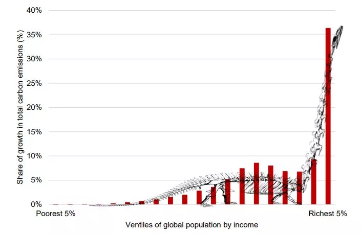 Das Problem ist jedoch der Kapitalismus, nicht die Menschen oder die Menschheit. Das reichste eine Prozent ist in den letzten 25 Jahren für mehr als doppelt so viele Treibhausgasemissionen verantwortlich wie die ärmste Hälfte der Welt. Die ärmere Hälfte der Weltbevölkerung hat ihre Emissionen im gleichen Zeitraum, der heute als Ära der CO2-Ungleichheit bekannt ist, im Grunde überhaupt nicht erhöht. Gleichzeitig gibt es ein paar große Unternehmen, die die Ressourcen der Natur ausbeuten. Laut dem Bericht Transnational Corporations as ‚Keystone Actors ‚ in Marine Ecosystems sind zum Beispiel nur 13 riesige Unternehmen für 20-40 Prozent aller Meeresfänge von größeren und schützenswerten Fischen verantwortlich.