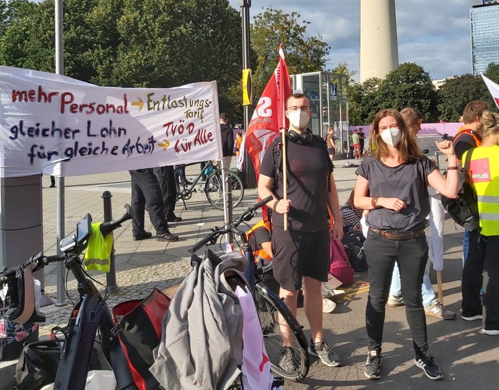In Berlin haben diese Woche gestreikt: Beschäftigte von Vivantes, Charité, Deutsche Bahn und Jacobs Krönung. Es ist höchste Zeit für gemeinsame Kundgebungen und gegenseitige Besuche. Auch bei der Deutschen Bahn geht es neben Arbeitsbedingungen und Entlohnung um die Verteidigung der Koalitionsfreiheit!