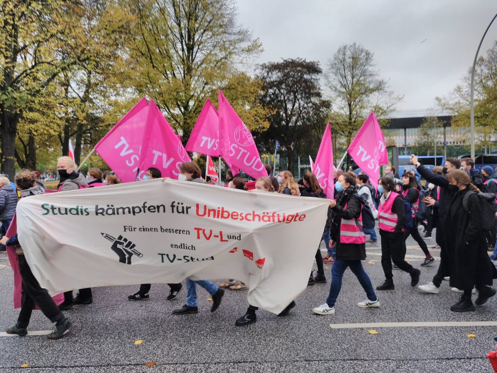 Obwohl sich nach den Anstrengungen während der Pandemie viele Kolleg*innen nach „Normalität“ sehnen und angesichts von Personalmangel und Überlastung in vielen Bereichen die Löhne nicht als das größte Problem wahrgenommen werden, sind viele durchaus streikbereit. Beim ersten Warnstreik in Hamburg am 27. Oktober hatten die Gewerkschaften nur mit 500 Teilnehmer*innen geplant, aber mehr als 1500 Kolleg*innen haben gestreikt.