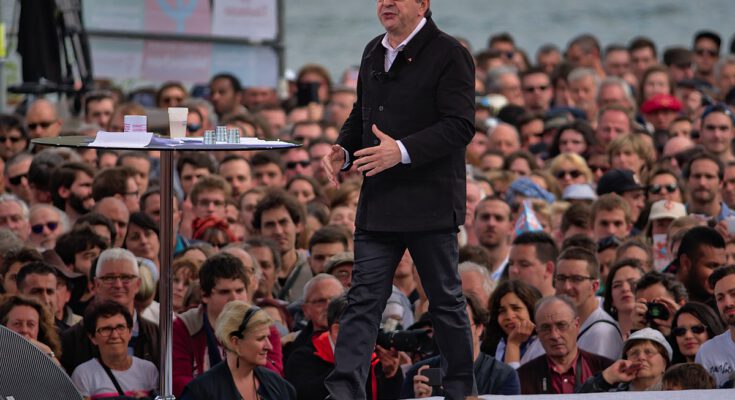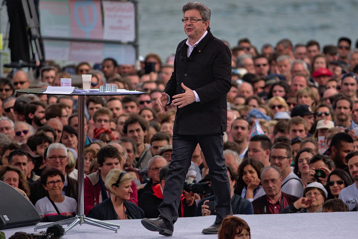 Im ersten Wahlgang der Präsidentschaftswahl kam Mélenchon mit 21,95% und nur 1,2% Abstand zu Le Pen auf den dritten Platz, unter anderem mit Forderungen für einen Mindestlohn von 1400 Euro pro Monat, feste Preise für Grundnahrungsmittel, ein großes Klimaprogramm, die Senkung des Rentenalters auf 60, die Besteuerung der Reichen, ein Ende der Privatisierungen und die Enteignung der Banken. Seine Bewegung La France Insoumise LFI („Das widerständige Frankreich“) forderte, die Macht des Präsidenten zu begrenzen, der im Krisenfall quasi-diktatorische Vollmachten nutzen könnte. Im Mai erhöhte er wegen der Preissteigerungen die Mindestlohn-Forderung auf 1500 Euro.