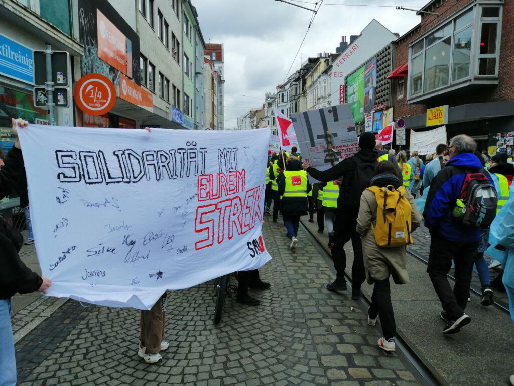 Bereits am 3. März traten die Klimabewegung und die Beschäftigten des öffentlichen Nahverkehrs (Bus und Straßenbahn) in einen gemeinsamen Klimastreik. Am 8. März rief ver.di parallel zum feministischen internationalen Frauenstreiktag die Krankenpfleger*innen und die Beschäftigten der Kindergärten zum Streik auf. Politische Streiks sind in Deutschland offiziell nicht erlaubt, aber es wurde versucht, die Arbeiter*innenbewegung und die sozialen Bewegungen zu verbinden. Am 22. März wurde ein weiterer großer Streiktag im öffentlichen Dienst organisiert, der bisher größte und politischste Streiktag, an dem Tausende von Beschäftigten nicht nur streikten, sondern sich an Demonstrationen und Streikposten in mehreren hundert Städten beteiligten.