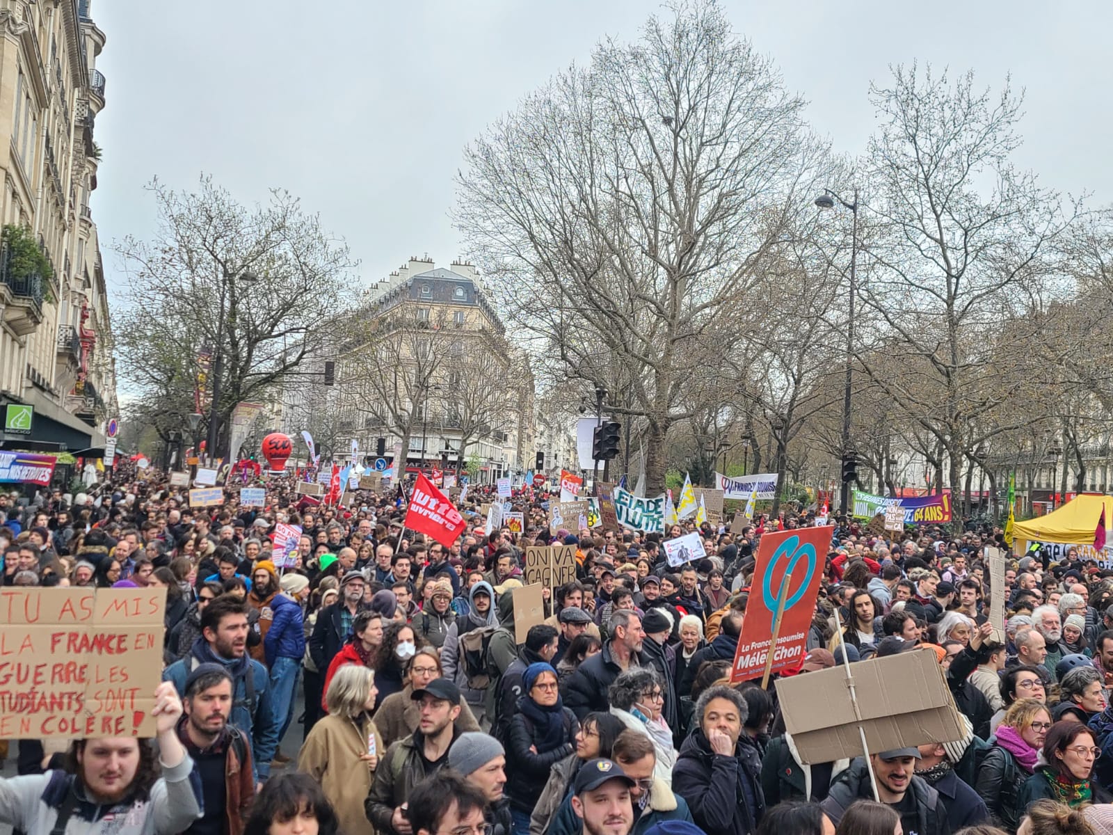 In ganz Frankreich wird gestreikt, Autos und Mülleimer brennen in den Innenstädten, immer wieder kommen Millionen zu riesigen Demonstrationen zusammen. Nach Angaben der Gewerkschaft CGT waren am 23. März allein in Paris 700.000 Menschen auf der Straße, landesweit 3 Millionen. ISA-Unterstützer*innen sind ebenfalls aktiv dabei in der Bewegung gegen Macrons Renten„reform“.
