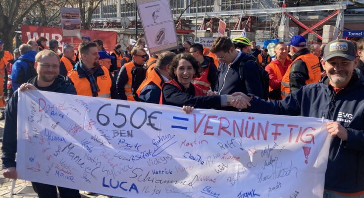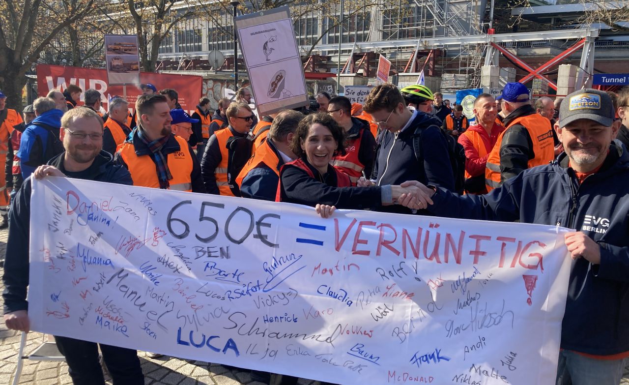 Auch bei ver.di gibt es Eisenbahner*innen – der „Eisenbahn-Tarifvertrag“ (ETV) gilt für 5.000 Beschäftigte bei 40 kleineren, überwiegend staatlichen bzw. kommunalen Verkehrsbetrieben. Dazu gehören auch Busunternehmen, Hafenbetriebe und Werkstätten. ver.di fordert 550 Euro Lohnerhöhung bei 12 Monaten Laufzeit, die Arbeitgeber*innen bieten bisher nur 150 Euro und 4,8 % – über 28 Monate und erst ab Mitte 2024, davor nur die übliche „Inflationsausgleichs“-Einmalzahlung.