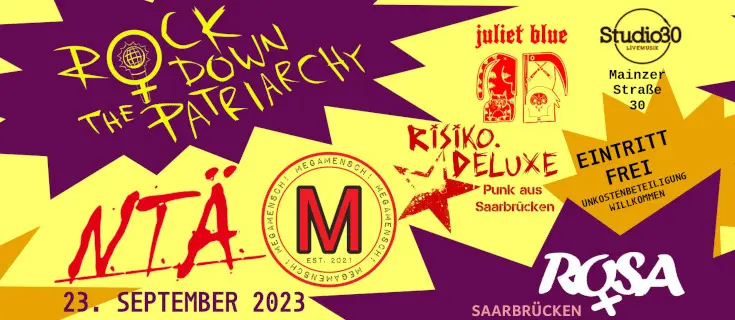 Wir wollen zusammen mit den lokalen Musikprojekten Juliet Blue, Risiko.Deluxe, Megamensch und NTÄ ein rauschendes Fest feiern und es mit einem politischen Angebot für den Kampf um bessere Lebensbedingungen verbinden.