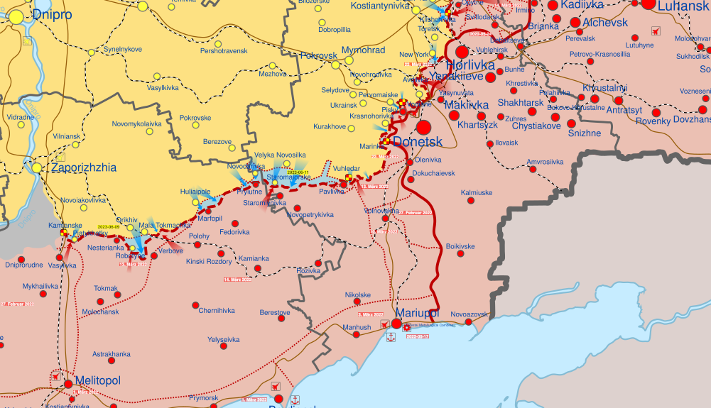 Bild: Ausschnitt aus https://upload.wikimedia.org/wikipedia/commons/4/4f/2022_Russian_invasion_of_Ukraine.svg, Viewsridge, CC BY-SA 4.0 https://creativecommons.org/licenses/by-sa/4.0, via Wikimedia Commons