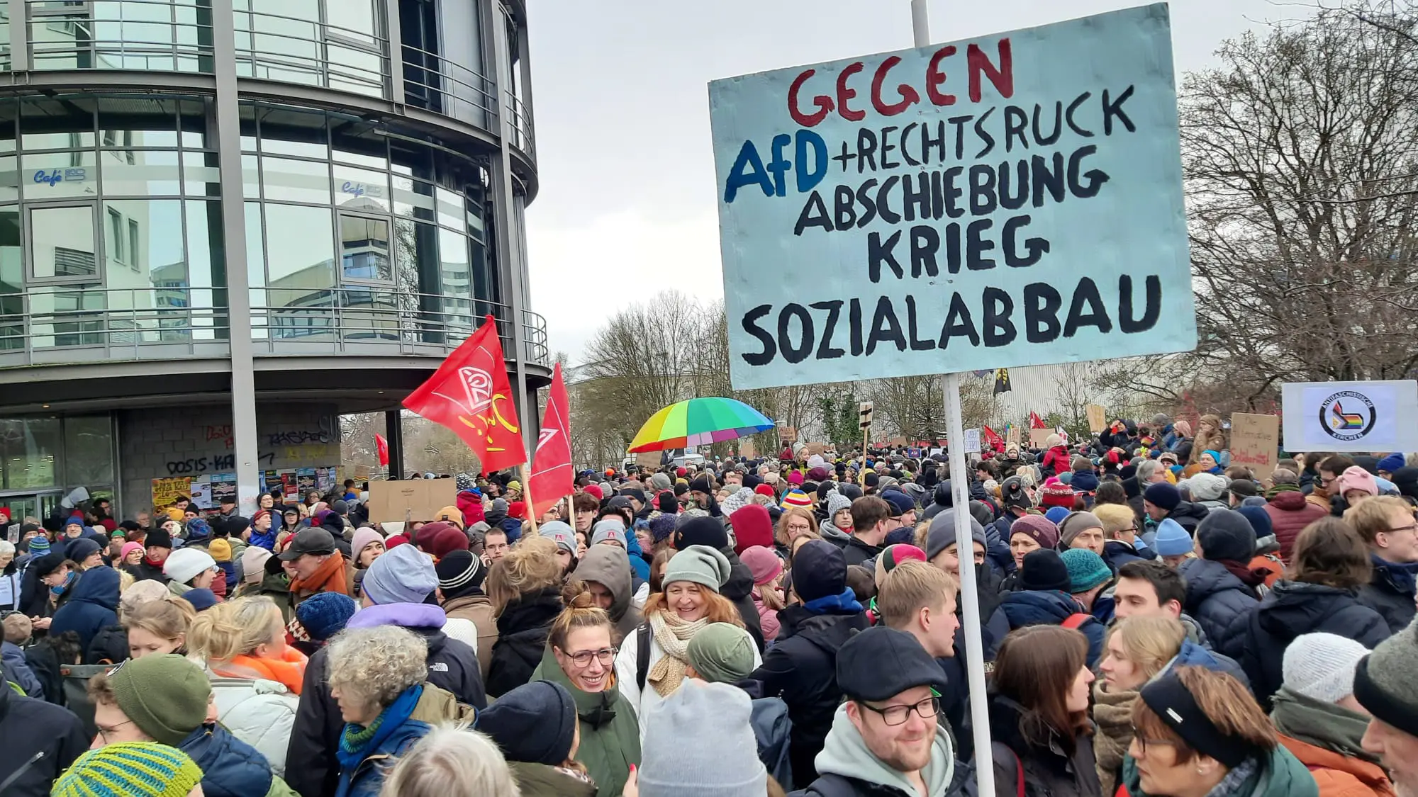 Seit den großen Kundgebungen gegen die AfD fragen sich viele, wie es weitergehen soll. Es ist klar, dass Demonstrationen nicht ausreichen und ein organisiertes und politisches Vorgehen gegen Rassismus und Faschismus nötig ist. Ein vorwärts weisender Vorschlag kommt vom Bündnis „Köln stellt sich quer “ (KSSQ), das am 21. Januar eine Demonstration mit mit 70.000 Teilnehmenden organisiert hatten und dort zu einem 15minütigen Generalstreik am internationalen Tag gegen Rassismus auf am 21. März aufrief.