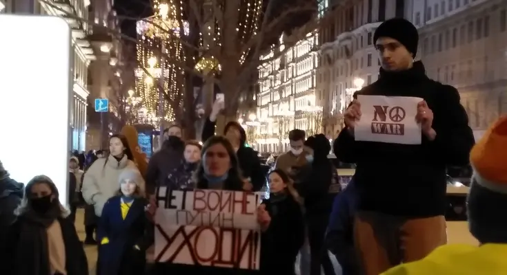Foto: Protest am 24.2.2022 in Moskau. Акутагава, CC BY-SA 4.0 , via Wikimedia Commons