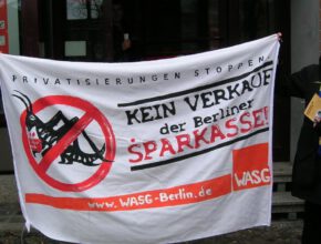 Zum Bundesparteitag der WASG am 24. und 25. März liegen zwei Anträge gegen die Privatisierung der Berliner Sparkasse und für die Unterstützung des Volksbegehrens sowie der Berliner WASG-Kampagne vor.