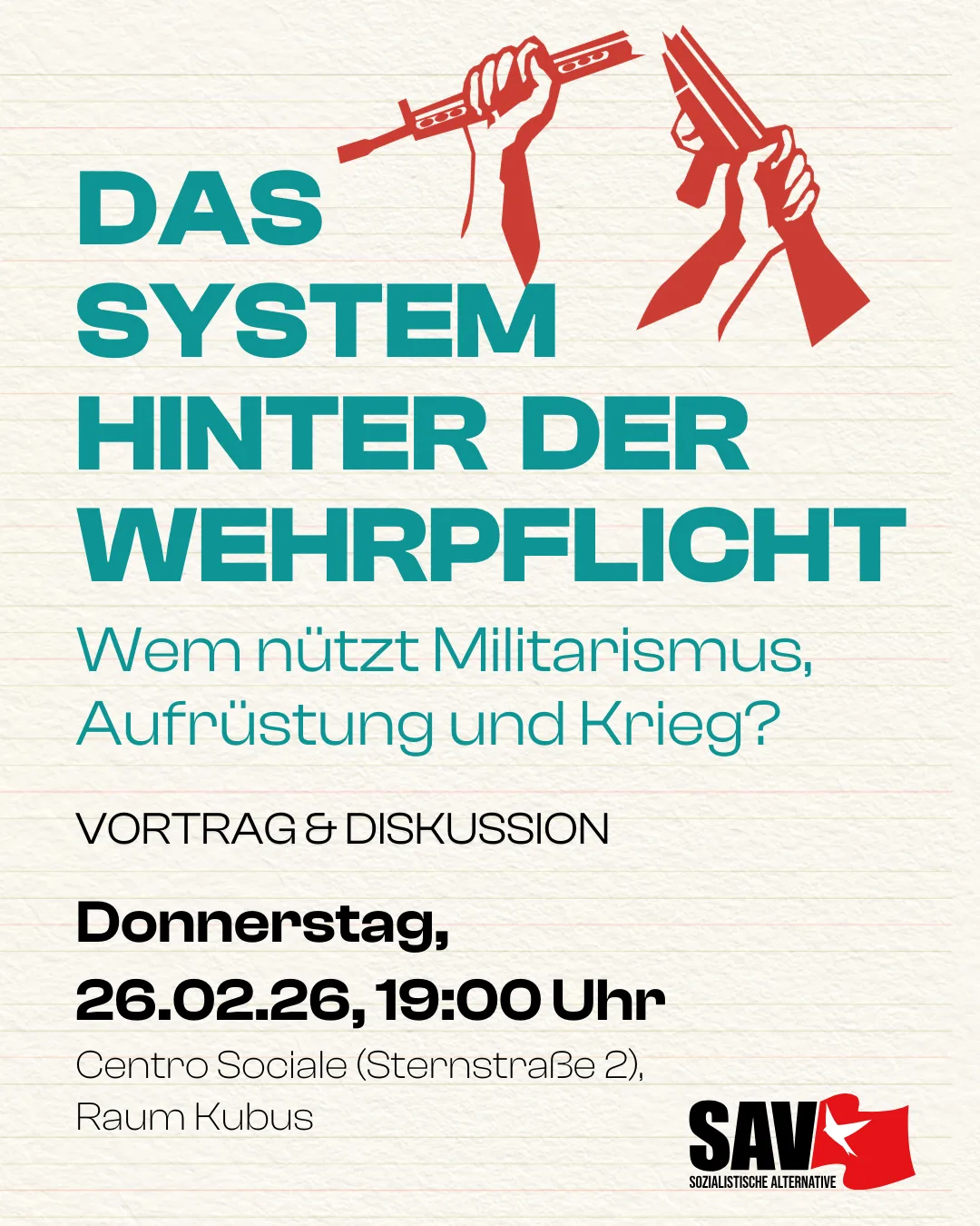 Um die Aufrüstung und Kriegsvorbereitungen zu bekämpfen, müssen sich die Arbeiter*innen, die Jugend und alle Unterdrückten in allen Ländern und international zusammenschließen. Wie wir dahin kommen und was wir alle dazu beitragen können, wollen wir gemeinsam diskutieren.
