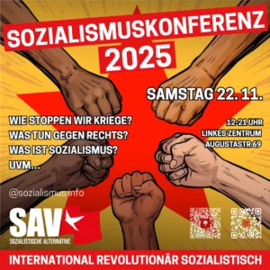 Komm zu unserer Sozialismuskonferenz am Samstag, den 22.November ab 12 Uhr im Linken Zentrum in Aachen