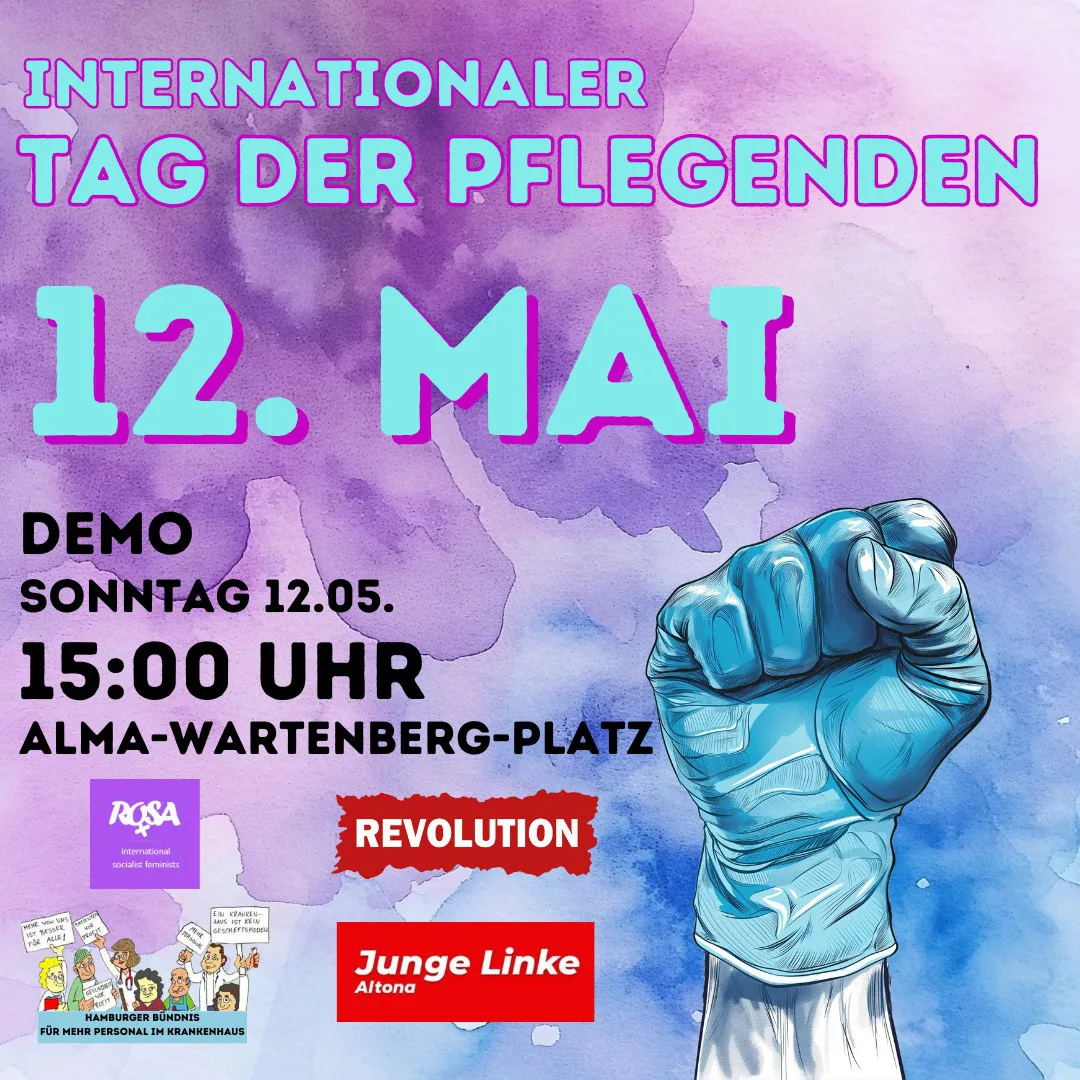 Alma-Wartenberg-Platz, Hamburg Alma-Wartenberg-Platz, HamburgAm 12.5. ist der internationale Tag der Pflegenden und wir gehen auf die Straße, denn das Gesundheitswesen geht seit Jahren für Profite der privaten und kirchlichen Konzerne auf dem Zahnfleisch …