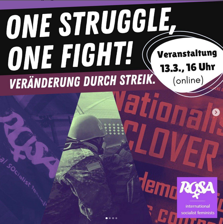 Zoom„One struggle, one fight! Veränderung durch Streik.“ am 13.3., 16-17:30 Uhr. Schaltet euch ein! https://us02web.zoom.us/j/89825795205